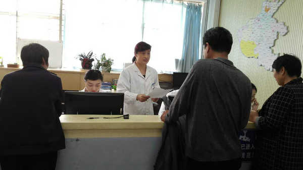 农合办工作人员蔡晓红(中)正在为新农合患者办理转诊手续