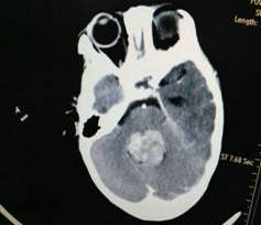近日,郑州大学五附院神经外科二病区收治了一名因第四脑室肿瘤引起急性脑积水1岁患儿,入院时表现为频繁呕吐、精神萎靡,神经外科二病区吴建珩副主任医师带领的诊疗组接诊后考虑患儿为肿瘤堵塞脑脊液循环通路,造成梗阻性脑积水及颅内压增高,时间就是生命,来不及常规行MRI检查,急诊行增强CT检查,CT检查结果回示患者小脑蚓部巨大肿瘤充满第四脑室,大小约30mm×30mm×35mm,考虑室管膜瘤,脑积水严重,脑疝风险极高,生命危在旦夕。患儿才刚满1岁不久,正是父母的心头的宝,若是遭此不幸,毫无疑问对其父母以及整个家庭都是难以承受的巨大的打击。