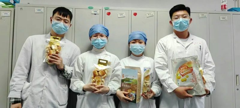 与此同时,多家爱心企业联系郑州大学五附院为白衣战士送来爱心物资,由此转达他们的问候。5月10日,郑州市悠活商贸有限公司向医院捐赠中粮豆浆粉120份和即食麦片144份。5月12日,河南卡吉诺食品有限公司向医院捐赠红豆餐包500袋。医院在此对上级工会的关心和以上企业的爱心捐赠表示衷心的感谢,护理部已及时将医院工会和社会各界的关心关爱传递给护理人员,为节日增添了欢乐的氛围。