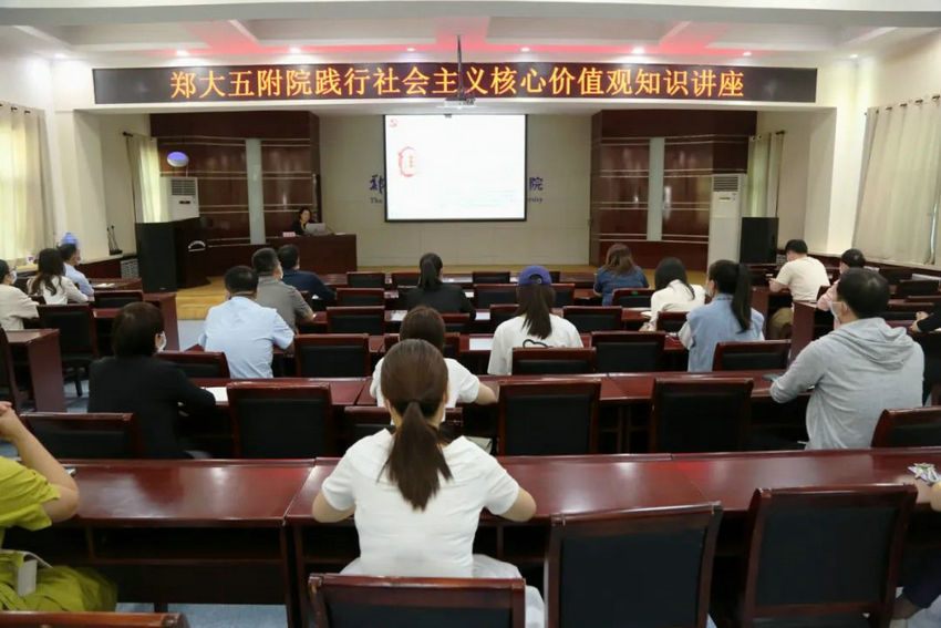 为进一步推动精神文明建设工作,根据年度工作安排,2022年5月17日下午四点,郑州大学五附院党委副书记、工会主席徐翠英在门诊五楼会议室作了题为《践行社会主义核心价值观,做有责任敢担当的时代新人》专题报告,各党总支书记、职工代表、发展对象、入党积极分子参加。