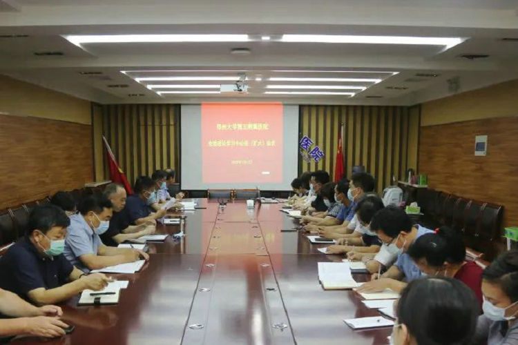 2022年7月1日,郑州大学五附院在办公楼二楼会议室召开党委理论学习中心组(扩大)会议,专题学习《再说“时时放心不下”的责任感》,院领导、党总支书记、相关职能科室参加会议。