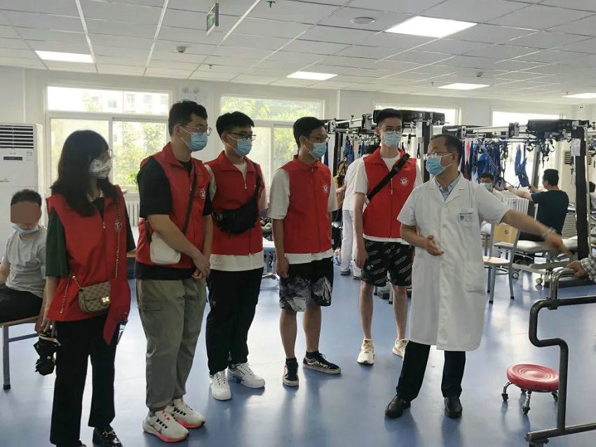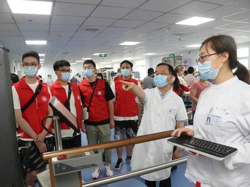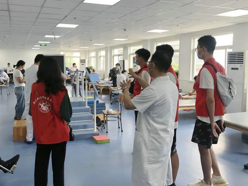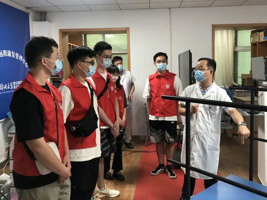 郑州大学康复医院副院长、郑州大学五附院康复医学科主任、康复医学博士、博士研究生导师李哲为实践团成员充分讲解和展示了医院在康复理疗、机械训练、传统中医理疗、bobath治疗、PNF治疗、虚拟现实与机器人治疗等专业康复治疗手段,展现了五附院康复医学科传统与现代治疗方法相结合的魅力。