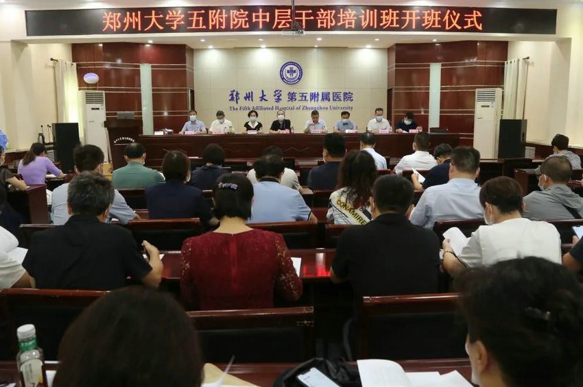 为了进一步深化能力作风建设年活动,强化中层干部的思想政治建设,提高中层干部的综合素质和履职能力,2022年7月30下午,郑州大学五附院在门诊五楼会议室举办中层干部“喜迎二十大 奋进新征程”专题培训班开班仪式。院领导韩晔、郑鹏远、徐翠英、周文平、王少亭、傅聿铭、杨怀玉、朱光出席,全院中层干部、护士长、分工会主席、团支部书记参加。开班仪式由党委副书记、院长郑鹏远主持。