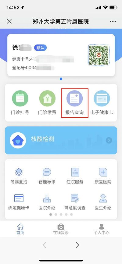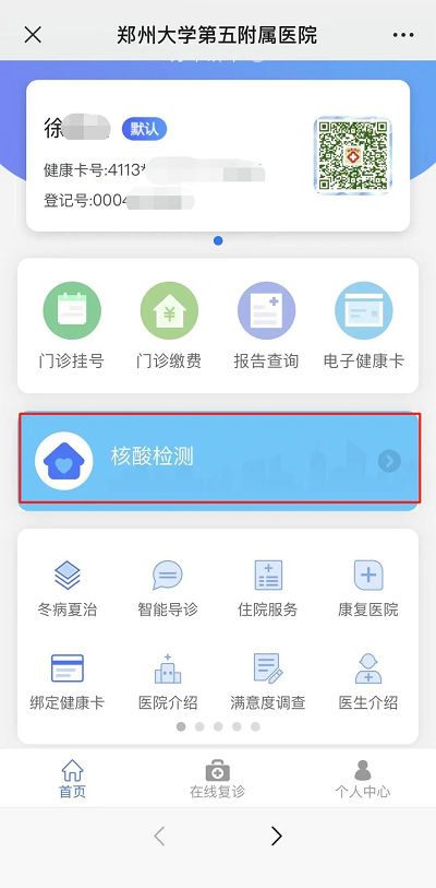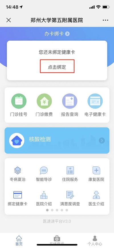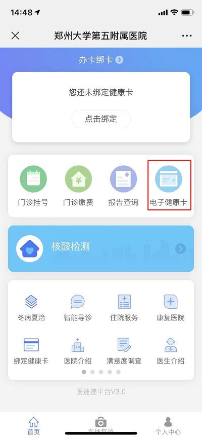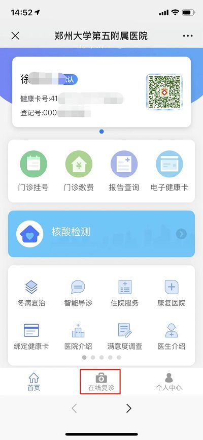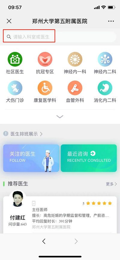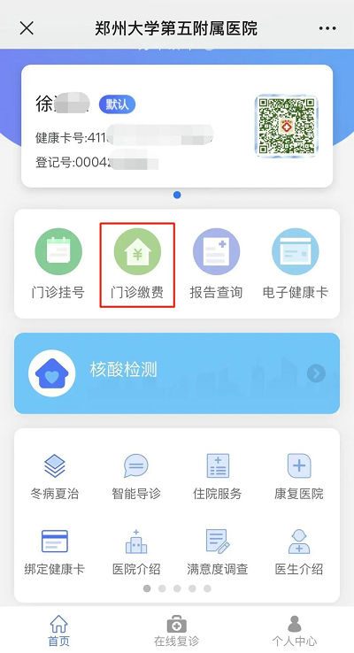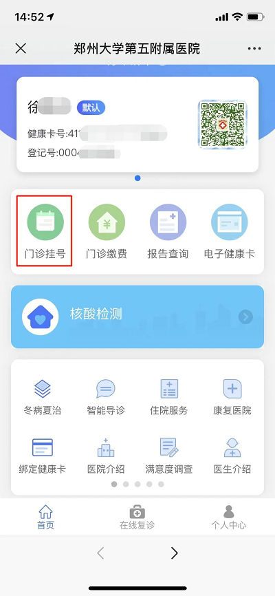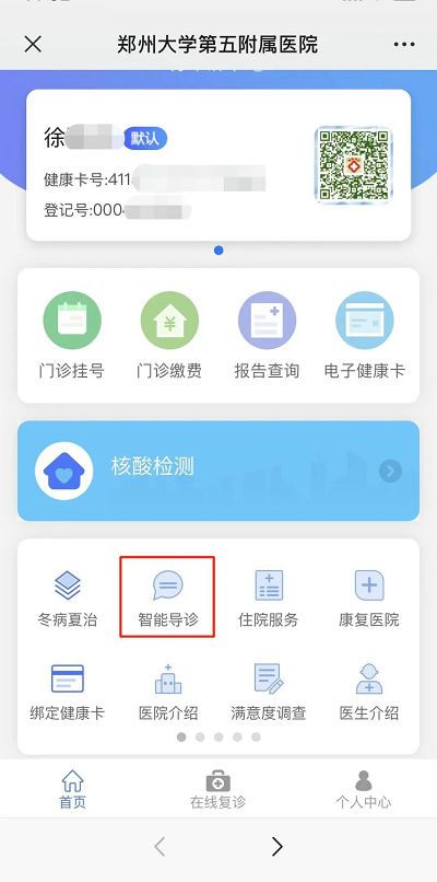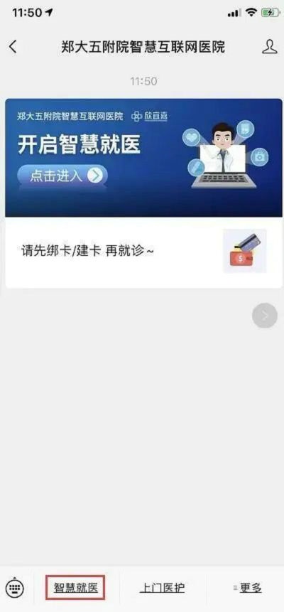 微信搜索并关注“郑大五附院智慧互联网医院”公众号