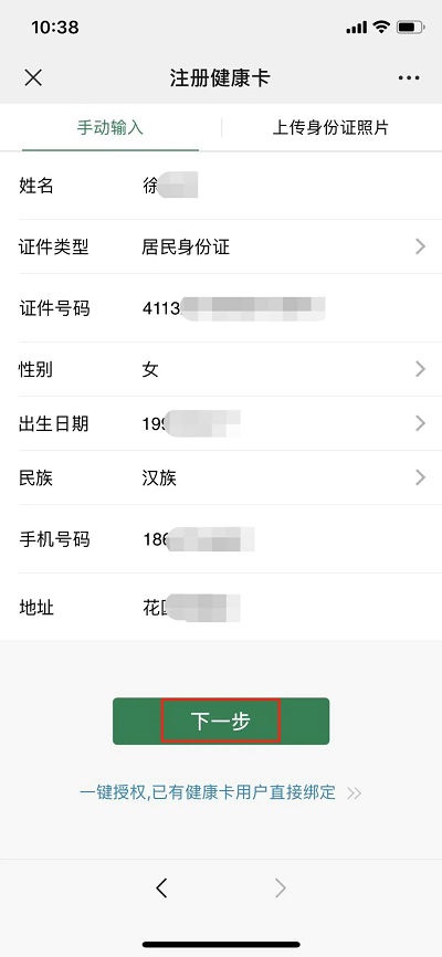 绑定健康卡 填写信息即可