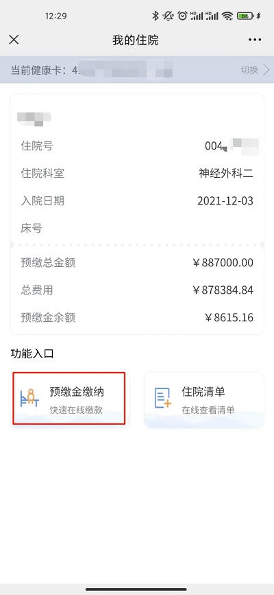 手机一点 轻松缴纳住院押金