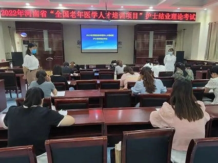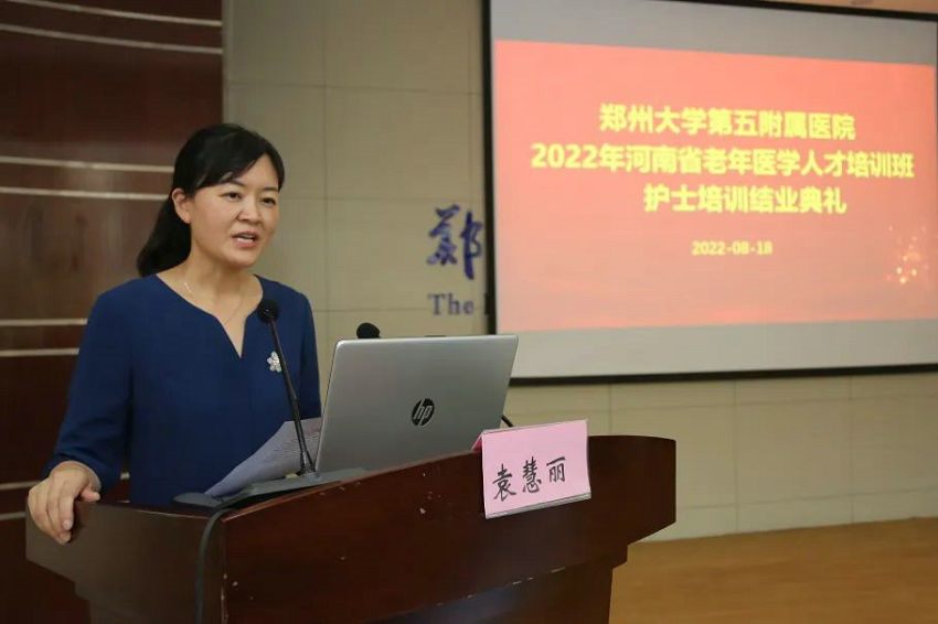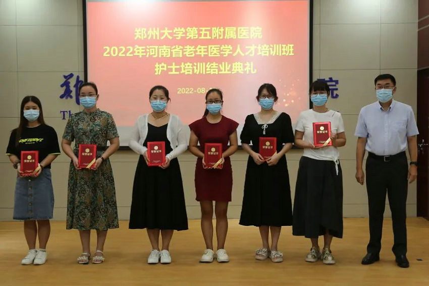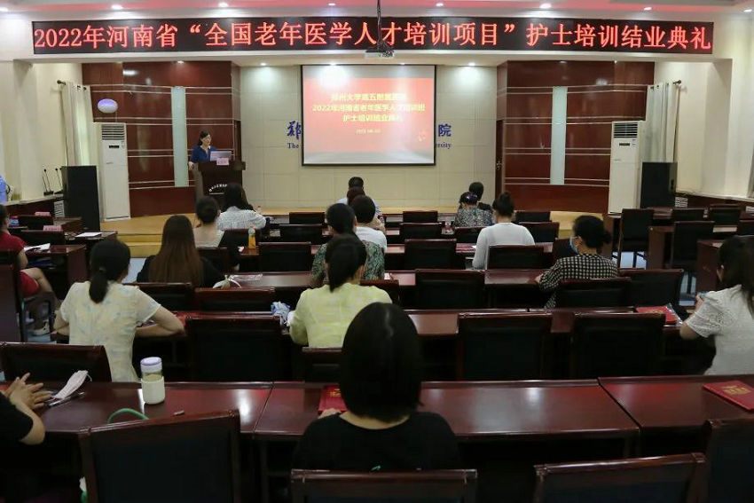 2022年8月19日,为期一个月的2022年河南省“全国老年医学人才培训项目”护士培训顺利结束。8月18日下午,郑州大学第五附属医院(原郑州铁路局中心医院,始建于1915年)在门诊五楼会议室举行了本期培训班结业典礼,副院长汤有才出席典礼、相关职能部门负责人及临床实践科室护士长参加典礼。