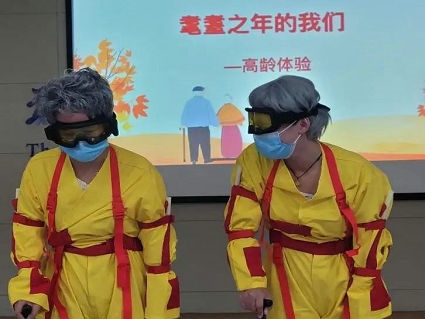 据悉,此次培训采取“理论学习+技能实践培训”相结合的方式,内容涵盖了老年护理基础理论、老年综合评估、老年护理技术、老年健康服务等内容,基地充分发扬教学优势,积极将理论融入实践。培训期间组织开展了“耄耋之年的我们——高龄体验”活动,使培训达到了更好的教学效果。学员们穿上老年行动模拟装备,亲身体验老人的生活。“体验活动非常有意义,让我们更好地理解老人的感受,切身体会了老人的诸多不便:看不清、听不见、行走困难、缺乏安全感……”,学员结合自己的体验分享感受,表示在今后的工作和生活中,要给老人更多的耐心和帮助,更多的陪伴和关爱。