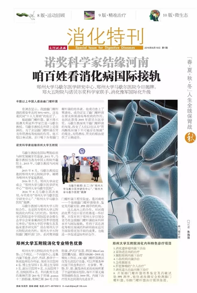 | 今日推出郑州大学五附院消化特刊 - 媒体报道 - 信息公开 - 郑州大学第五附属医院