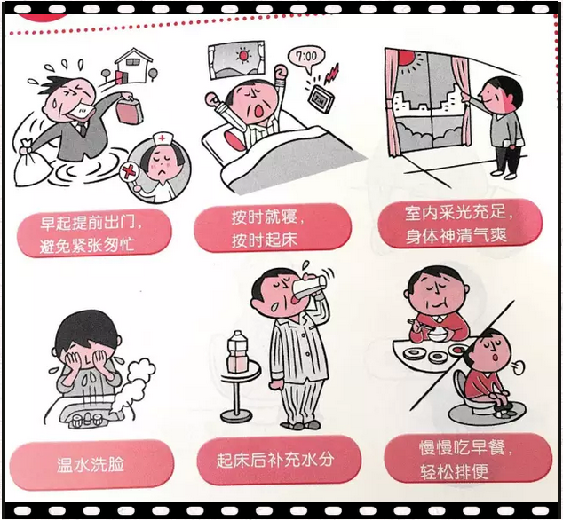 1.研究报道指出,心肌梗死,在自律神经丛副交感神经主导向交感神经主导转换时期(早晨时间段)容易发作。因此,慌张匆忙的起床,更容易引起心肌梗死发作的危险。