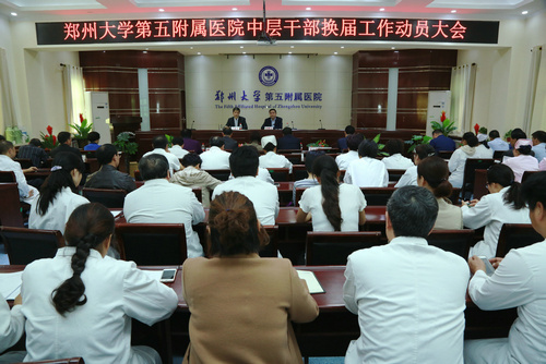 2016年10月17日下午,在门诊五楼会议室召开中层干部换届工作动员大会暨中青年医师专题会。会议由党委副书记、院长郑鹏远主持,党委书记王新军做中层干部换届工作部署,副书记、纪委书记徐翠英,副院长王兵、傅聿铭、杨怀玉,工会主席朱光出席会议。200多名中层干部、医生骨干、护士长和硕博研究生参加了此次会议。