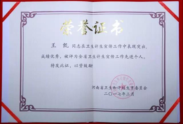 大会对2016年度宣传工作先进集体及先进个人进行了表彰。郑州大学五附院荣获“全省卫生计生宣传工作先进集体”称号,宣传科王凯荣获“全省卫生计生宣传工作先进个人”称号。