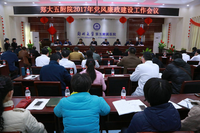 3月20日下午,郑州大学五附院2017年党风廉政建设工作会议在门诊五楼会议室召开,院领导、各党支部书记、科室负责人、护士长参加了会议。会议由院党委副书记、院长郑鹏远同志主持。
