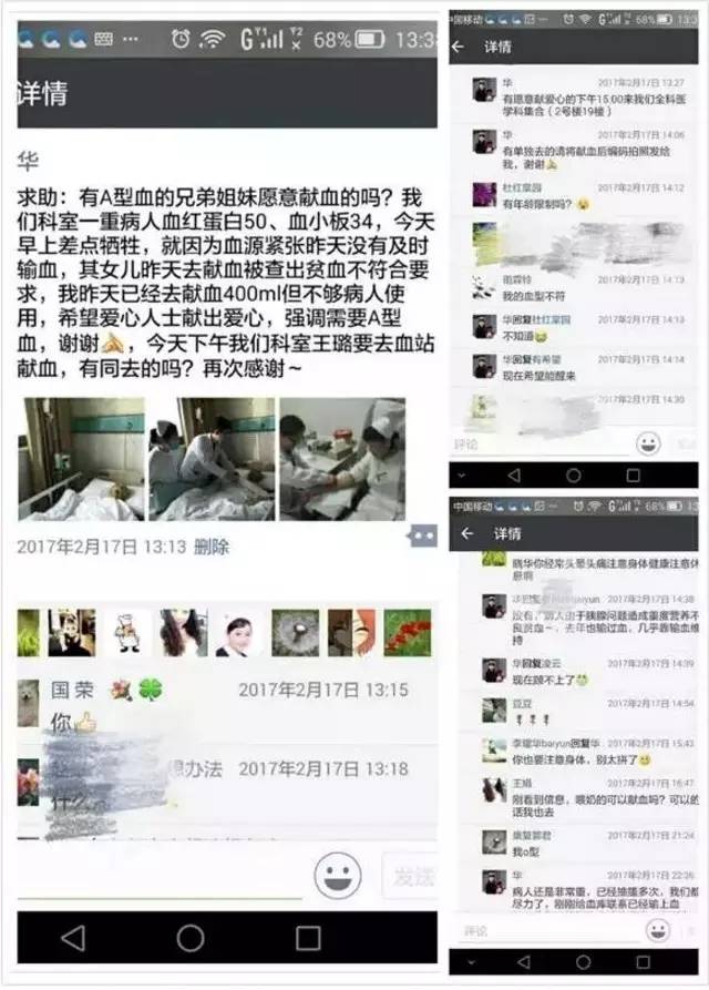 许多郑州大学五附院的医护人员得到消息后也积极联系,询问如何参加献血,为了老人的生命,挽起袖子自发的进行爱心接力。