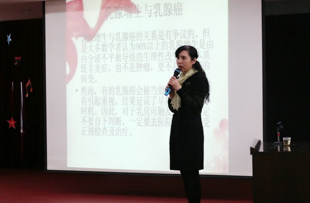 3月7日下午两点半,乳腺外科杨颖涛主任,妇产科付建红副主任,体检科胡倩副主任一行来到了郑州铁路职业干部培训学校,受到学校工会陈主席热情接待和高度肯定。讲座持续了2个小时,几位专家从不同角度讲解了乳腺及妇科疾病的预防和保健,希望铁路职业干部培训学校的老师们通过讲座,关注自身健康,及时预防疾病。并耐心解答了女老师们咨询的问题。