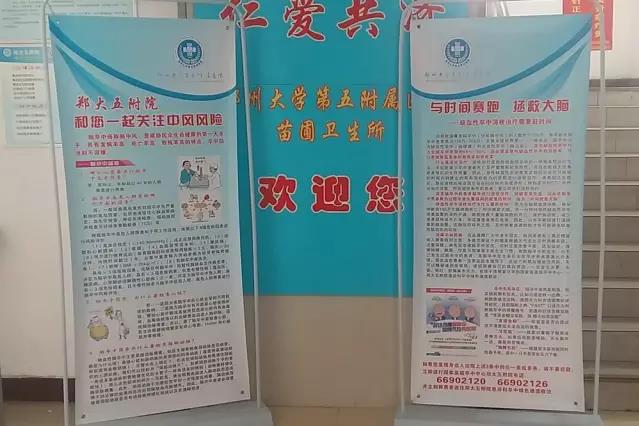 设立在苗圃卫生所的郑州大学五附院脑卒中中心展板