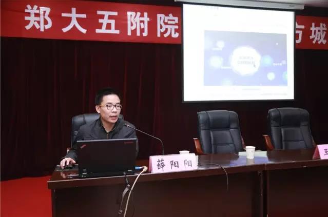 2017年3月30日,伴着蒙蒙的春雨,郑州大学五附院院长郑鹏远、副院长傅聿铭、工会主席朱光带领心电图专家牛向东主任、风湿免疫科专家王燕主任,院办、医保办、农合办、信息与远程医疗科、医疗协作办、宣传科等科室负责人、工作人员及郑州大学协同创新中心工程师一行赴方城县参加了由方城县卫计委主办的“郑州大学五附院网络知识方城培训座谈会”。郑鹏远院长一行受到了方城县县委书记褚清黎、副县长马伟及卫计委、人社局等领导的热情接待。