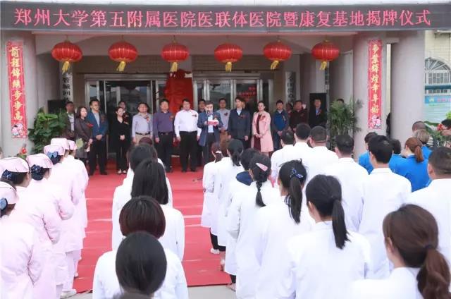 上午10时,郑州大学第五附属医院医联体医院暨康复基地揭牌仪式在南曹乡卫生院隆重举行。郑州大学五附院院长郑鹏远、工会主席朱光,管城回族区南曹乡党委书记王传胜、管城回族区卫计委主任李蓉、南曹乡副乡长刘明明、管城回族区卫计委副主任肖仁义等领导出席了揭牌仪式。