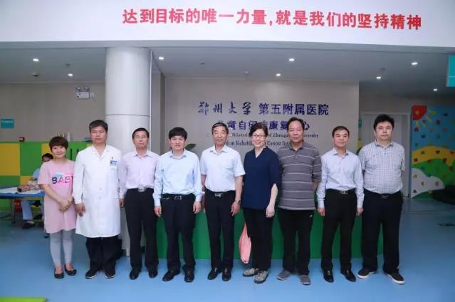 2017年5月4日下午,河南省残疾人联合会副理事长常为民,河南省残疾人联合会康复部部长吴明生、康复部副部长霍好民,河南省残疾人康复中心医院院长杜书林等领导、专家莅临郑州大学五附院调研儿童康复工作。郑州大学五附院党委书记王新军、副院长王少亭、副院长杨怀玉、工会主席朱光等院领导在行政二楼会议室与常为民副理事长一行进行了座谈。科教科科长汤有才,儿童康复医学科主任李恩耀,香港儿童自闭症特殊教育专家李美儀,香港理工大学儿童康复治疗专业博士董安琴陪同调研。