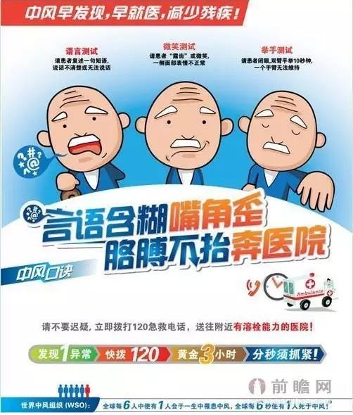 脑卒中虽然发病急,但发病前期有征兆,比如出现走路一边倒、一侧肢体感觉迟钝、面部无力和言语困难症状等症状。目前国际上将“FAST”口诀作为判断脑卒中的预警信号,用通俗的语言概括就是“言语含糊没笑脸,胳膊不抬奔医院”。