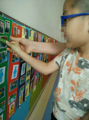 配对照片,找自己的时间表,依次取任务卡,放下任务卡。早会开始了,我学习向老师同学握手问好,学习举手表达需要。