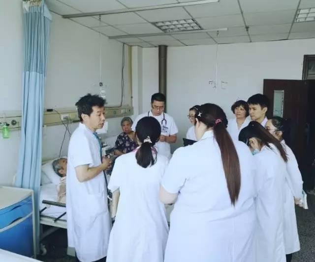 为了圆满做好这一项工作,陈永生主任在早晨查房期间都会亲自带领留学生接触患者。走进病房,由颜文华大夫用熟练的英语为留学生讲解。在教学过程中,陈永生主任秉承着理论联系实践的理念,传授临床经验,指导各项基本临床技术操作,达到培养留学生的临床思维模式,提高其表达、分析和解决问题能力的目的。为了更好的实现教学目的,陈主任讲解专业术语时语速放得很慢,并不时地让留学生自己动手学习叩诊、触诊。