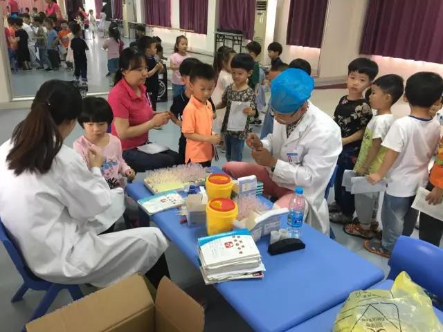 儿童体检化验工作是重中之重,化验室医师在幼儿园老师全力配合下,顺利完成采血工作。