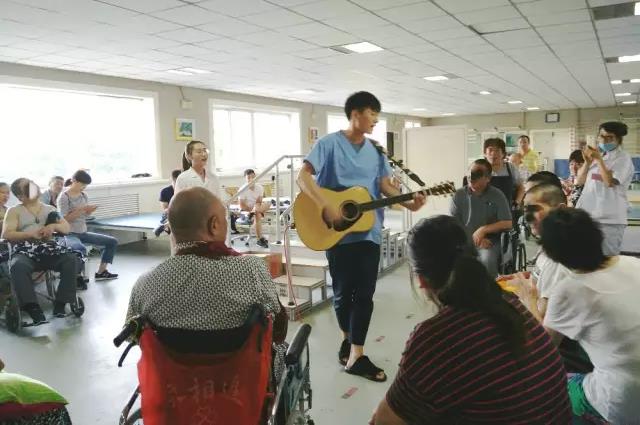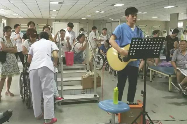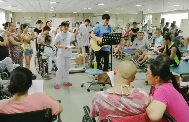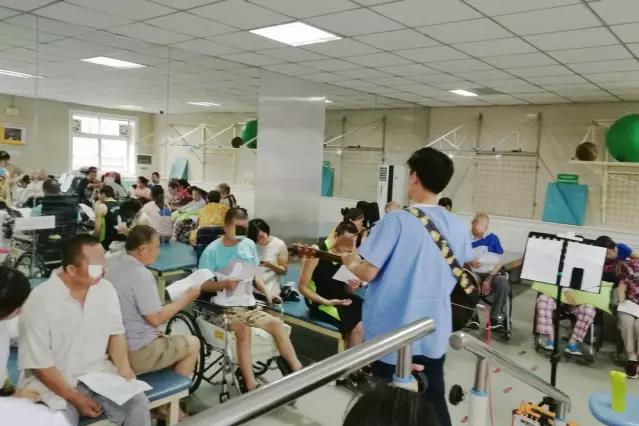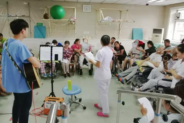 2017年7月14日下午,伴着夕阳的霞光一段段歌声自康复大楼传开,歌声虽不及专业歌手那么婉转动听,但却显得格外认真。只因演唱者是一些特殊人群,他们多是因为一些由于脑血管意外后引起言语功能障碍的成年病友。今天他们聚集在康复科医学科PT室大厅里,与郭大中和巫珊两位专业的音乐康复医师和言语治疗师王芳一起,开启了一种新的小组言语康复课程——音乐治疗。