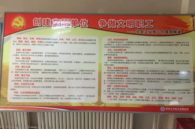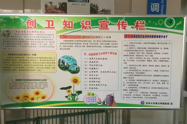 郑州大学五附院作为医疗卫生机构,在“双迎攻坚”工作中严格按照上级要求,精心准备,全力“备考”。院领导高度重视,对创文、创卫工作全面督导,相关负责部门、科室认真谋划、统筹安排、制定措施、落实任务,针对“双迎攻坚”宣传氛围营造,规范设置预检分诊点、发热门诊、肠道门诊,医院环境卫生整治,院区严格控烟,污水处理站、医疗废弃物处理站规范化管理, 免疫门诊设置及管理,院区机动车辆、非机动车辆有序停放等重点检查内容,在内部自查、及时整改的基础上,结合郑州市卫计委、二七区卫计委和建中街街道办事处等部门的明察暗访,对标找差、对标整改、对标落实,消除盲区死角,补齐创建短板,全力以赴进行“双迎攻坚”,为郑州市顺利通过全国文明城市考评、国家卫生城市复审做出自己的贡献!