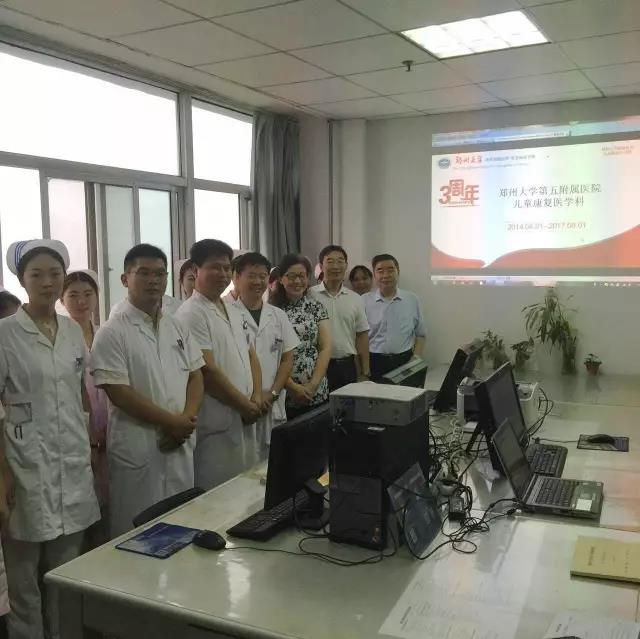 2017年8月2日上午7:30郑州大学五附院院长郑鹏远,副院长王少亭,院办主任高攀攀,医务科科长张自森,医务科副科长王琰,护理部副主任张秋君,儿童康复医学科特聘香港儿童自闭症特殊教育专家李美儀等人来到了科室晨交班会场,祝贺儿童康复医学科成立三周年生日快乐。