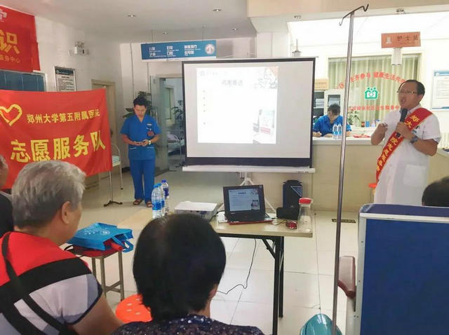 为了给社区老人一个满意的答案,2017年8月10日下午,郑州大学五附院呼吸内科冯永海主任和护士巩雅舒专程赴蜜蜂张社区卫生服务中心为老人们开展相关的健康讲座。冯主任首先讲解呼吸系统疾病的病因、临床表现以及治疗等知识,同时提醒老年人注意: