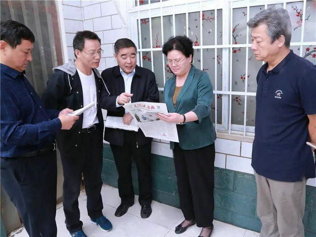 ▲ 省政协教科文卫体委员会副主任李新中(左二)、扶沟县县长张颖波(右二)、周口市政协副主席张文平(右一)、郑州大学五附院院长郑鹏远(左三)共同关注媒体对郑州大学五附院的新闻报道