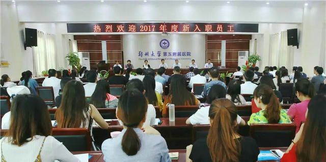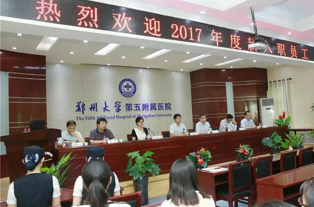 ▲ 院领导对新员工岗前培训工作高度重视,集体出席了欢迎仪式,迎接新员工加入郑州大学五附院大家庭。