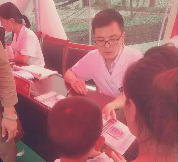 简短的开场仪式之后,家长们便带着小患者蜂拥而至,我们所负责的工作是采集患儿的病史资料,提供咨询,然后由专家一一诊治,这样不仅保证了咨询就诊的有序进行,也可以让专家把更多的精力投入到患儿的专科检查及更详细的问诊上。慢慢地,天气变得炎热起来,就诊的家长将我们的帐篷围地水泄不通,汗水早已将白大衣浸透,当地的工作人员也贴心地在我们身后搭起了防晒网。
