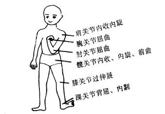 6个月不能自由翻身,不能独坐,扶站尖足支撑,下肢交叉、内收等;