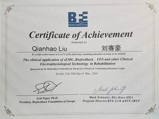 工作是学习的源泉,学习是工作的指南,不断学习才能进步。随着医疗科技手段的不断提升,康复医学正在逐步步入数据时代,刘骞豪治疗师作为一名从业长达十年的资深运动治疗师,通过多种方式,系统深入学习了SFMA(选择性功能动作评估),姿势评估和PRI(姿势恢复技术)、Bobath(神经发育学),PNF(本体感觉神经肌肉促进疗法)等课程,并以此为工作范版,结合电生理的数据采集和治疗手段,推陈出新,梳理数据规律,不仅发现了姿势变化对上、下肢肌张力变化和运动功能的关联,并利用神经肌肉电刺激、姿势训练、振动训练等针对性训练的手段介入治疗,效果良好,功能评级显著增高,现已收治近百名病例,发表数篇高水平学术论文,并以此为基础首次申报学术课题研究便有所突破,获得了欧洲电生理协会的学术认证。