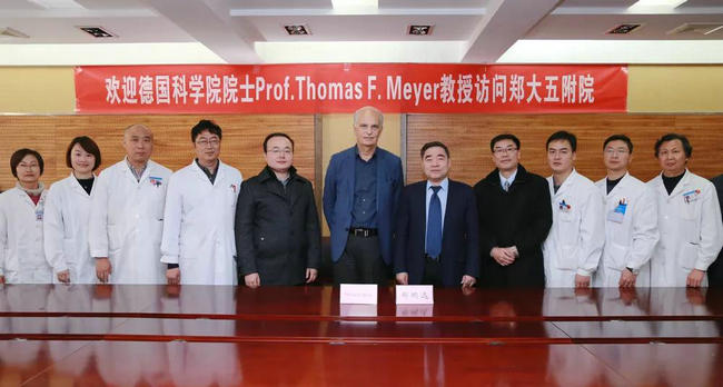 11月24日,德国科学院院士Thomas F. Meyer教授应邀来郑州大学五附院进行学术访问交流,并受聘为郑州大学五附院名誉教授。12月,医院成功申报了河南省外专局的外籍专家工作站项目,设立了德国科学院院士Thomas F. Meyer教授工作室。