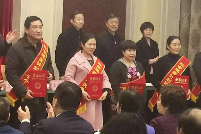 ▲ 医疗协作办公室主任龚淑梅(左二)代表优秀红十字志愿者上台领奖
