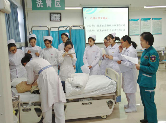 ▲ 护理部副主任李艳华、急诊科护士长李凤英为研究生培训“除颤技术”