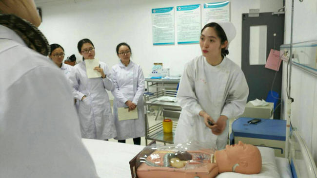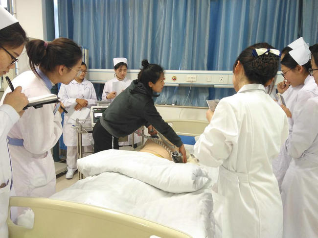 ▲ 内分泌科一病区护师付宝芳为研究生培训“胃肠减压技术”