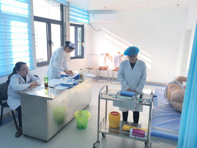 在此次技能考核期间,护士长、老师、和学生志愿者积极配合,相互帮助。护士长在技能中心协调处理各项事宜,随时巡视各个考场,维持考场外纪律,给学生一个安静的考场环境;医院内科、外科、妇儿教研室抽调的监考老师们认真负责,公平公正,严格要求,确保考试学生完成各项技能操作;技能中心的负责老师坐镇后方,积极补充考试的各项耗材;学生志愿者们吃苦耐劳,坚守各自岗位,配合各自考场的老师并且努力练习英语口语,对沟通有困难的留学生进行翻译讲解。学生们认真对待此次技能考试,全力以赴,积极备考。学生们对此次技能考试都十分满意,检验了他们的学习成果,锻炼了他们的动手能力,使他们以后能够更好的融入临床工作。