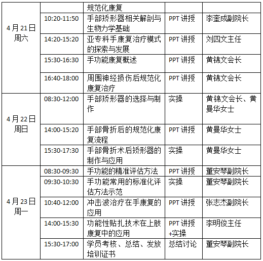 本次“手功能康复评估与治疗规范化技术”国家级培训班培训费为1500元。学习考核合格后授予I类继续教育学分10分。