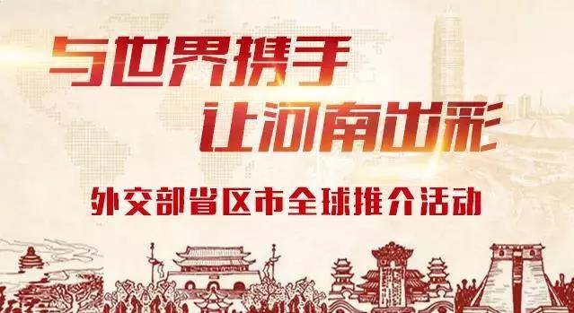 2018年4月13日,以“新时代的中国:与世界携手 让河南出彩”为主题的外交部河南全球推介活动在外交部“蓝厅”举行。国务委员兼外交部长王毅出席并发表讲话,省委书记王国生致辞,省长陈润儿进行推介。此次推介活动是在学习贯彻习近平主席在博鳌亚洲论坛2018年年会开幕式上的主旨演讲精神之际举行的,是河南纪念改革开放40周年的重要举措,吸引了150多个国家的驻华使节、国际组织驻华代表及工商界代表、中外专家学者和媒体记者等500余人出席。