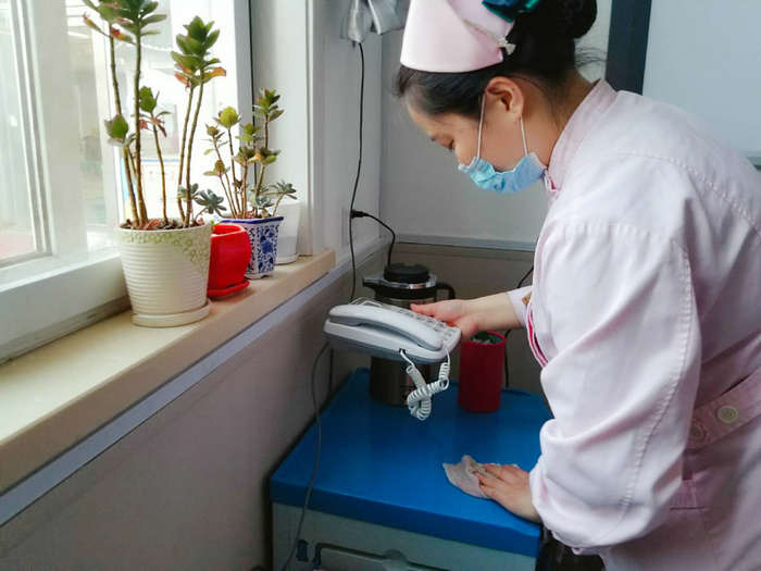 ▲ 病房清洁还不够,过道及公共区域和物品也逐一清洁!