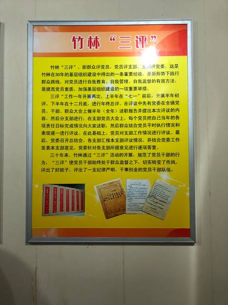随后参观了 “竹林展馆”,了解竹林的发展史,学习竹林“三评”经验和“十项八好”评比活动,这里记录了竹林人“以发展集体经济为主,坚持走共同富裕道路”的艰辛路程,直观感受了竹林镇近年来取得的可喜成绩。