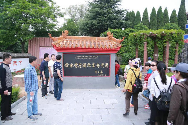 在竹林镇北山公园,党员们参观了“引黄入竹纪念碑”,了解到竹林镇从“种地靠天收,吃水贵如油”的贫困小山村,到投资9000多万元,从32公里外经四级提灌引来了黄河水,彻底解决了竹林千百年来严重缺水的问题。这一段艰苦奋斗、锲而不舍的新农村建设史,使参观的党员无不动容,也为竹林人百折不挠的精神深深打动。三个支部的73名党员在党办主任郭芹的带领下,面对党旗在纪念碑前庄严宣誓,重温了党员誓词。