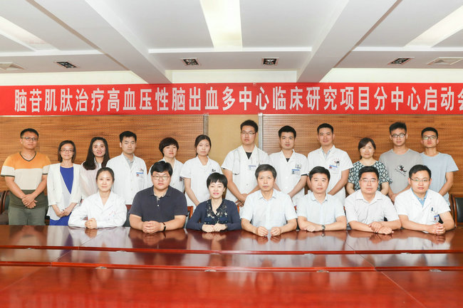 2018年6月14日由国家卫健委脑卒中防治委员会组织的一项“脑苷肌肽治疗高血压性脑出血的随机、对照、双盲的多中心临床试验”项目在郑州大学五附院启动。国家卫健委脑卒中防治委员会学术部主任张红、北京科普瑞星医药科技有限公司项目经理张晓侠、国家脑防委办公室临床监察员贺迎坤出席会议。郑州大学五附院脑卒中管理办公室主任张自森、副主任刘成军,神经外科、神经内科等参与该项目的科研人员参加了会议。该项目全国有8家单位参与,组长单位为陆军军医大学第一附属医院,郑州大学五附院党委书记、神经外科专家王新军教授代表医院参与了该研究,承担分中心临床科研任务。
