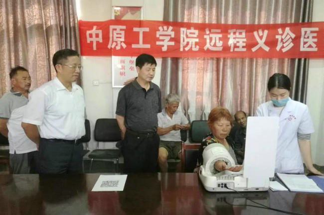 2018年6月14日—15日,中原工学院校长王宗敏和党委副书记刘志刚带领党委组织部、党政办公室负责同志到该校定点扶贫村——南阳市方城县广阳镇新集村,考察指导驻村帮扶工作,并联合郑州大学五附院开展远程医疗义诊服务活动。王宗敏校长代表学校为新集村捐赠一套远程医疗服务设备,并在新集村建立村级远程医疗服务站,使新集村村民足不出村就能享受三甲医院名医诊疗服务。