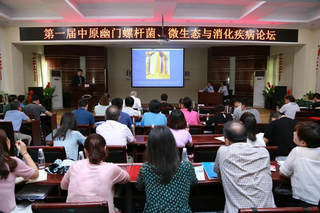 2018年6月23-24日由郑州大学五附院主办的“第一届中原幽门螺杆菌、微生态与消化疾病论坛”在医院门诊5楼成功举办。会上,设立在郑州大学五附院的 “幽门螺杆菌与胃癌杰出外籍科学家工作室”、“中国幽门螺杆菌分子医学中心河南分中心”正式揭牌;由郑州大学五附院牵头组建的“河南省幽门螺杆菌诊治联盟”正式成立。河南省人力资源和社会保障厅副厅长李海龙、郑州大学副校长屈凌波、河南省外国专家局专家和项目管理处处长周江波出席会议。德国科学院院士Thomas F. Meyer教授、台湾大学医学院黄凯文教授等本专业领域知名专家受邀作学术讲座。来自全省相关领域的专家、骨干医师400余人参加了此次学术盛会。