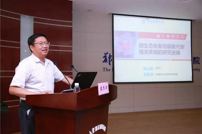 ▲ 大连医科大学袁杰力教授讲授《微生态失衡与尿酸代谢相关疾病的研究进展》